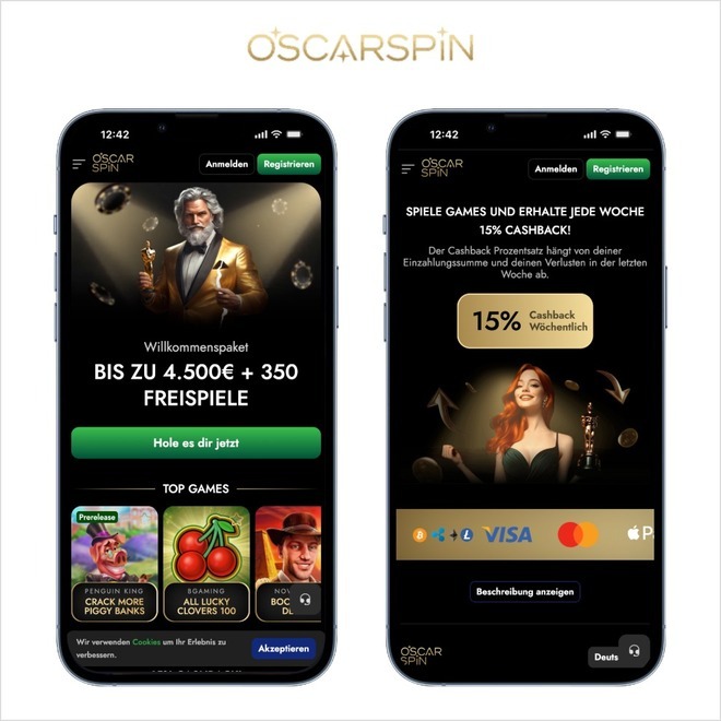 Besonders spannend ist der 1.500 € Willkommensbonus mit 300 Freispielen, die verschiedenen VIP Stufen, Oscar Coins mit echten Sachpreisen und die Tatsache, dass im Casino ohne OASIS Sperre gespielt wird.. Ideal für Spieler, die in Echtgeld Online Casinos Echtgeld verwenden und gewinnen möchten.